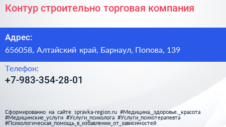 Контур, строительно-торговая компания по адресу 656058, Алтайский край, Барнаул, Попова, 139 в дальнейшем Организация, размещена в следующих категориях: