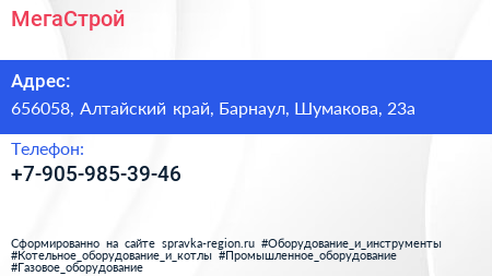 МегаСтрой по адресу 656058, Алтайский край, Барнаул, Шумакова, 23а в дальнейшем Организация, размещена в следующих категориях:
