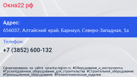 Окна22.рф по адресу 656037, Алтайский край, Барнаул, Северо-Западная, 1а в дальнейшем Организация, размещена в следующих категориях:
