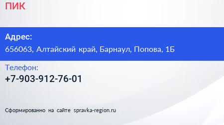 ПИК по адресу 656063, Алтайский край, Барнаул, Попова, 1Б в дальнейшем Организация, размещена в следующих категориях: