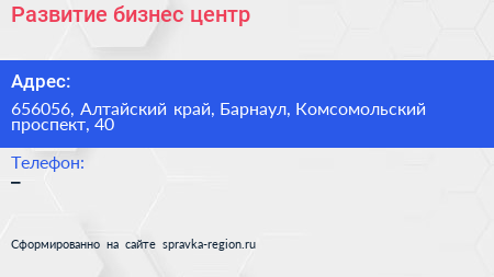 Развитие, бизнес-центр по адресу 656056, Алтайский край, Барнаул, Комсомольский проспект, 40 в дальнейшем Организация, размещена в следующих категориях: