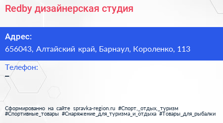 Redby, дизайнерская студия по адресу 656043, Алтайский край, Барнаул, Короленко, 113 в дальнейшем Организация, размещена в следующих категориях: