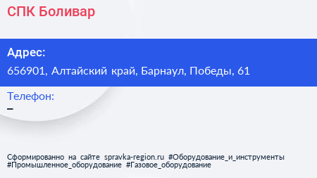 СПК Боливар по адресу 656901, Алтайский край, Барнаул, Победы, 61 в дальнейшем Организация, размещена в следующих категориях: