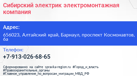 Сибирский электрик, электромонтажная компания по адресу 656023, Алтайский край, Барнаул, проспект Космонавтов, 6а в дальнейшем Организация, размещена в следующих категориях: