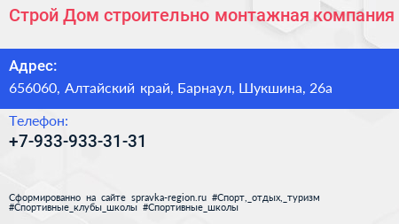 Строй-Дом, строительно-монтажная компания по адресу 656060, Алтайский край, Барнаул, Шукшина, 26а в дальнейшем Организация, размещена в следующих категориях: