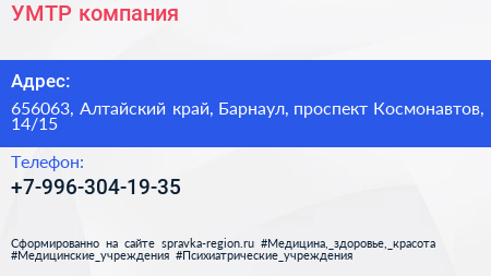 УМТР, компания по адресу 656063, Алтайский край, Барнаул, проспект Космонавтов, 14/15 в дальнейшем Организация, размещена в следующих категориях: