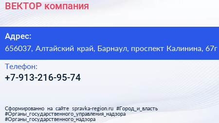 ВЕКТОР, компания по адресу 656037, Алтайский край, Барнаул, проспект Калинина, 67г в дальнейшем Организация, размещена в следующих категориях:
