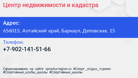 Центр недвижимости и кадастра по адресу 656015, Алтайский край, Барнаул, Деповская, 15 в дальнейшем Организация, размещена в следующих категориях: