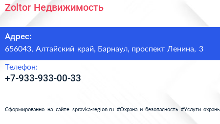 Zoltor Недвижимость по адресу 656043, Алтайский край, Барнаул, проспект Ленина, 3 в дальнейшем Организация, размещена в следующих категориях: