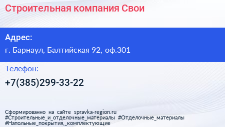 Строительная компания «Свои» по адресу г. Барнаул, Балтийская 92, оф.301 в дальнейшем Организация, размещена в следующих категориях: