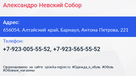 Александро-Невский Собор по адресу 656054, Алтайский край, Барнаул, Антона Петрова, 221 в дальнейшем Организация, размещена в следующих категориях: