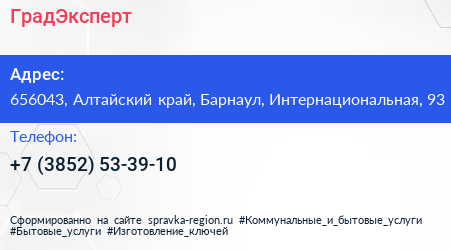 ГрадЭксперт по адресу 656043, Алтайский край, Барнаул, Интернациональная, 93 в дальнейшем Организация, размещена в следующих категориях: