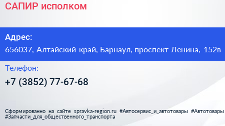САПИР, исполком по адресу 656037, Алтайский край, Барнаул, проспект Ленина, 152в в дальнейшем Организация, размещена в следующих категориях: