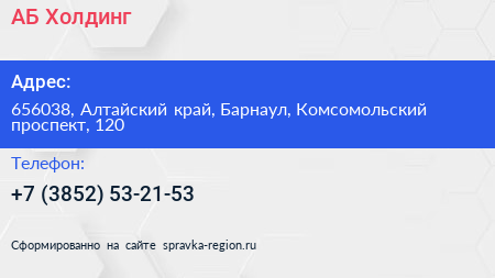 АБ Холдинг по адресу 656038, Алтайский край, Барнаул, Комсомольский проспект, 120 в дальнейшем Организация, размещена в следующих категориях:
