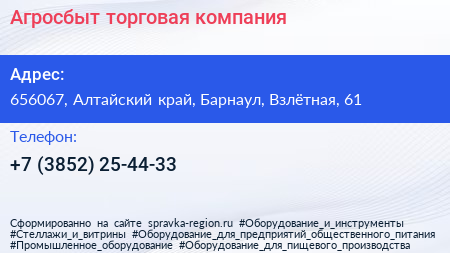 Агросбыт, торговая компания по адресу 656067, Алтайский край, Барнаул, Взлётная, 61 в дальнейшем Организация, размещена в следующих категориях: