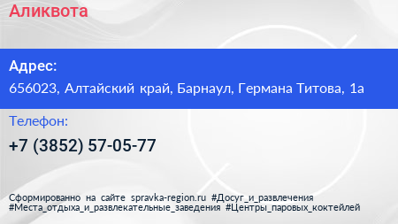 Аликвота по адресу 656023, Алтайский край, Барнаул, Германа Титова, 1а в дальнейшем Организация, размещена в следующих категориях:
