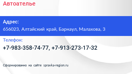 Автоателье по адресу 656023, Алтайский край, Барнаул, Малахова, 3 в дальнейшем Организация, размещена в следующих категориях:
