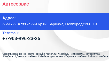 Автосервис по адресу 656066, Алтайский край, Барнаул, Новгородская, 10 в дальнейшем Организация, размещена в следующих категориях: