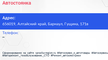 Автостоянка по адресу 656019, Алтайский край, Барнаул, Гущина, 171в в дальнейшем Организация, размещена в следующих категориях: