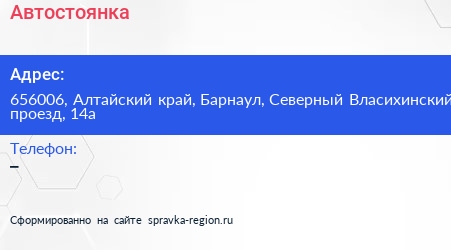 Автостоянка по адресу 656006, Алтайский край, Барнаул, Северный Власихинский проезд, 14а в дальнейшем Организация, размещена в следующих категориях: