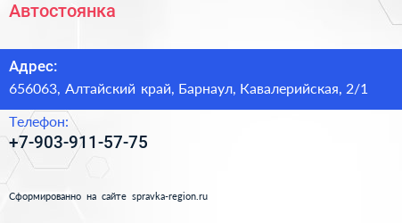 Автостоянка по адресу 656063, Алтайский край, Барнаул, Кавалерийская, 2/1 в дальнейшем Организация, размещена в следующих категориях: