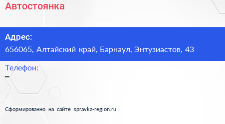 Автостоянка по адресу 656065, Алтайский край, Барнаул, Энтузиастов, 43 в дальнейшем Организация, размещена в следующих категориях: