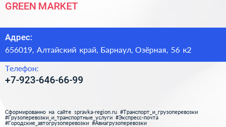 GREEN MARKET по адресу 656019, Алтайский край, Барнаул, Озёрная, 56 к2 в дальнейшем Организация, размещена в следующих категориях: