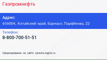 Газпромнефть по адресу 656004, Алтайский край, Барнаул, Парфёнова, 22 в дальнейшем Организация, размещена в следующих категориях: