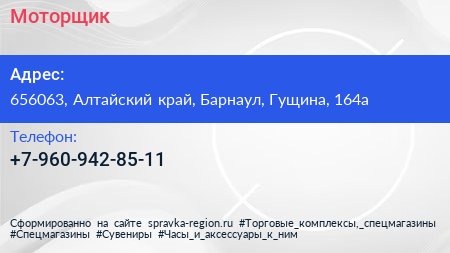 Моторщик по адресу 656063, Алтайский край, Барнаул, Гущина, 164а в дальнейшем Организация, размещена в следующих категориях: