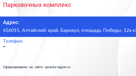 Парковочных комплекс по адресу 656015, Алтайский край, Барнаул, площадь Победы, 12а к3 в дальнейшем Организация, размещена в следующих категориях: