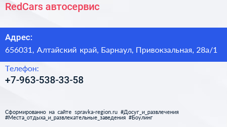 RedCars, автосервис по адресу 656031, Алтайский край, Барнаул, Привокзальная, 28а/1 в дальнейшем Организация, размещена в следующих категориях: