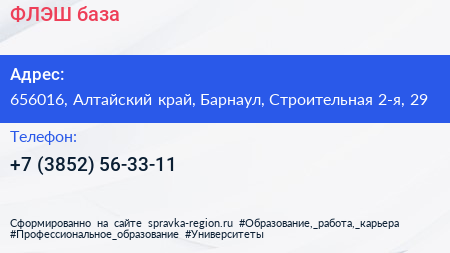 ФЛЭШ, база по адресу 656016, Алтайский край, Барнаул, Строительная 2-я, 29 в дальнейшем Организация, размещена в следующих категориях: