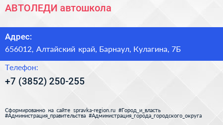 АВТОЛЕДИ, автошкола по адресу 656012, Алтайский край, Барнаул, Кулагина, 7Б в дальнейшем Организация, размещена в следующих категориях: