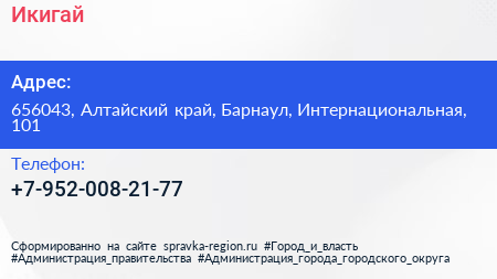 Икигай по адресу 656043, Алтайский край, Барнаул, Интернациональная, 101 в дальнейшем Организация, размещена в следующих категориях: