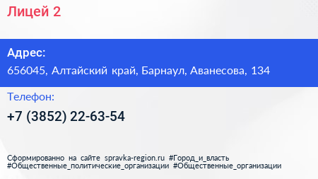 Лицей №2 по адресу 656045, Алтайский край, Барнаул, Аванесова, 134 в дальнейшем Организация, размещена в следующих категориях:
