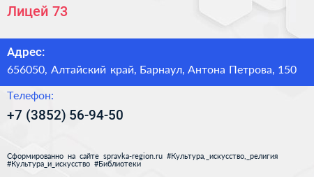Лицей №73 по адресу 656050, Алтайский край, Барнаул, Антона Петрова, 150 в дальнейшем Организация, размещена в следующих категориях: