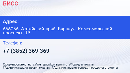 БИСС по адресу 656056, Алтайский край, Барнаул, Комсомольский проспект, 19 в дальнейшем Организация, размещена в следующих категориях:
