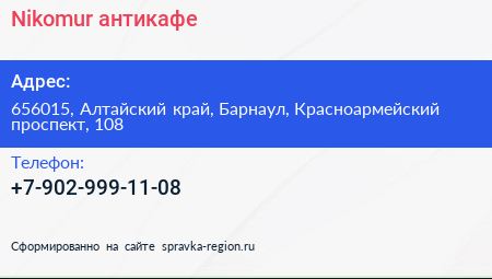 Nikomur, антикафе по адресу 656015, Алтайский край, Барнаул, Красноармейский проспект, 108 в дальнейшем Организация, размещена в следующих категориях: