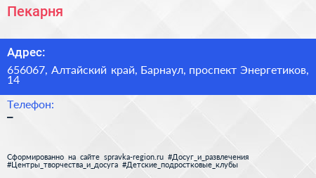 Пекарня по адресу 656067, Алтайский край, Барнаул, проспект Энергетиков, 14 в дальнейшем Организация, размещена в следующих категориях: