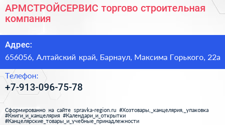 АРМСТРОЙСЕРВИС, торгово-строительная компания по адресу 656056, Алтайский край, Барнаул, Максима Горького, 22а в дальнейшем Организация, размещена в следующих категориях: