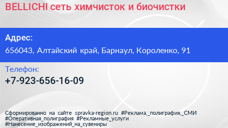 BELLICHI, сеть химчисток и биочистки по адресу 656043, Алтайский край, Барнаул, Короленко, 91 в дальнейшем Организация, размещена в следующих категориях: