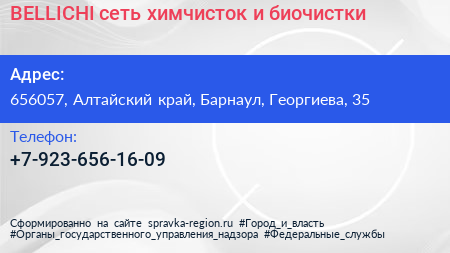 BELLICHI, сеть химчисток и биочистки по адресу 656057, Алтайский край, Барнаул, Георгиева, 35 в дальнейшем Организация, размещена в следующих категориях: