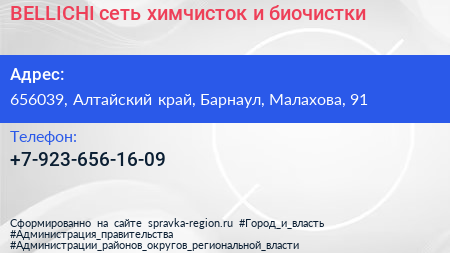 BELLICHI, сеть химчисток и биочистки по адресу 656039, Алтайский край, Барнаул, Малахова, 91 в дальнейшем Организация, размещена в следующих категориях:
