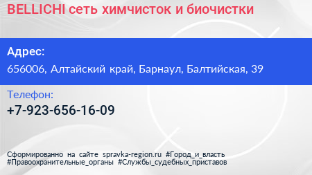 BELLICHI, сеть химчисток и биочистки по адресу 656006, Алтайский край, Барнаул, Балтийская, 39 в дальнейшем Организация, размещена в следующих категориях: