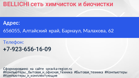 BELLICHI, сеть химчисток и биочистки по адресу 656055, Алтайский край, Барнаул, Малахова, 62 в дальнейшем Организация, размещена в следующих категориях: