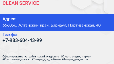 CLEAN SERVICE по адресу 656056, Алтайский край, Барнаул, Партизанская, 40 в дальнейшем Организация, размещена в следующих категориях: