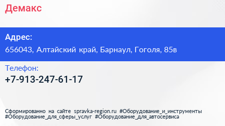 Демакс по адресу 656043, Алтайский край, Барнаул, Гоголя, 85в в дальнейшем Организация, размещена в следующих категориях: