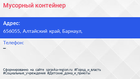 Мусорный контейнер по адресу 656055, Алтайский край, Барнаул, в дальнейшем Организация, размещена в следующих категориях: