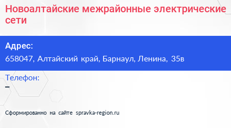 Новоалтайские межрайонные электрические сети по адресу 658047, Алтайский край, Барнаул, Ленина, 35в в дальнейшем Организация, размещена в следующих категориях: