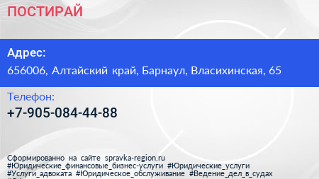 ПОСТИРАЙ по адресу 656006, Алтайский край, Барнаул, Власихинская, 65 в дальнейшем Организация, размещена в следующих категориях: